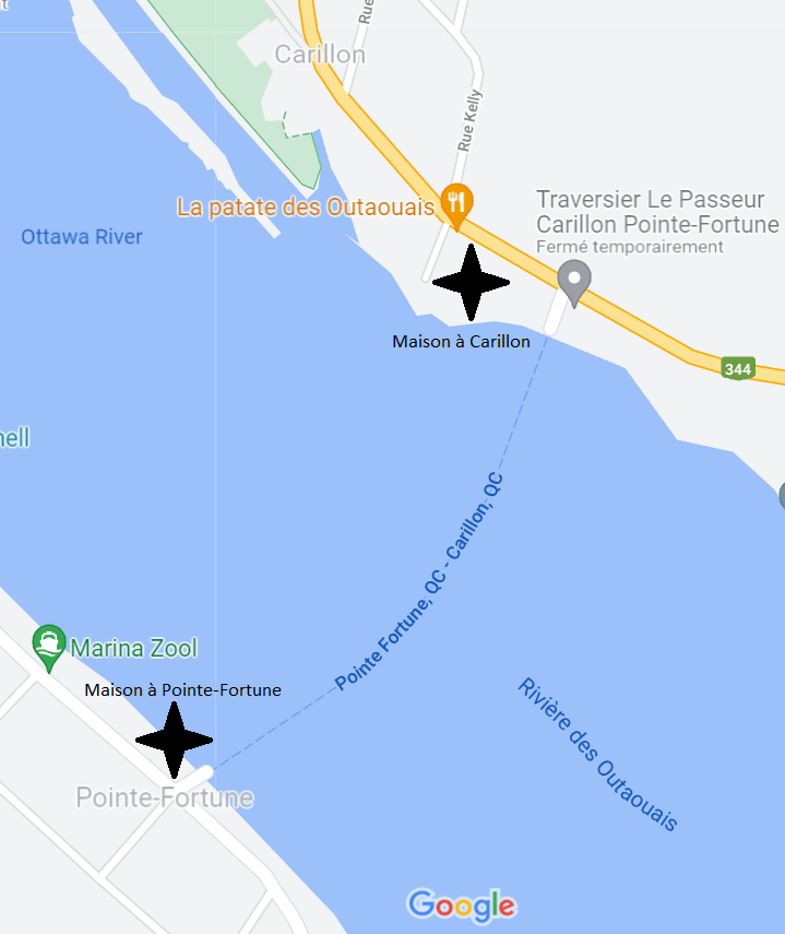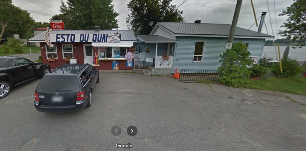 Pour éviter qu’on soit trop submergé d’eau et les grêlons qui commençaient à pincer nos p’tits bras d’enfant, moi et mon ami on a pris nos élans d’en haut de la côte pour s’abriter à l’intérieur du casse-croûte (Restaurant du Quai) de mes parents juste en bas. Ça adonne pour des raisons « marketing », ce casse-croûte est situé à la sortie du traversier Le Passant reliant Carillon à Pointe-Fortune.