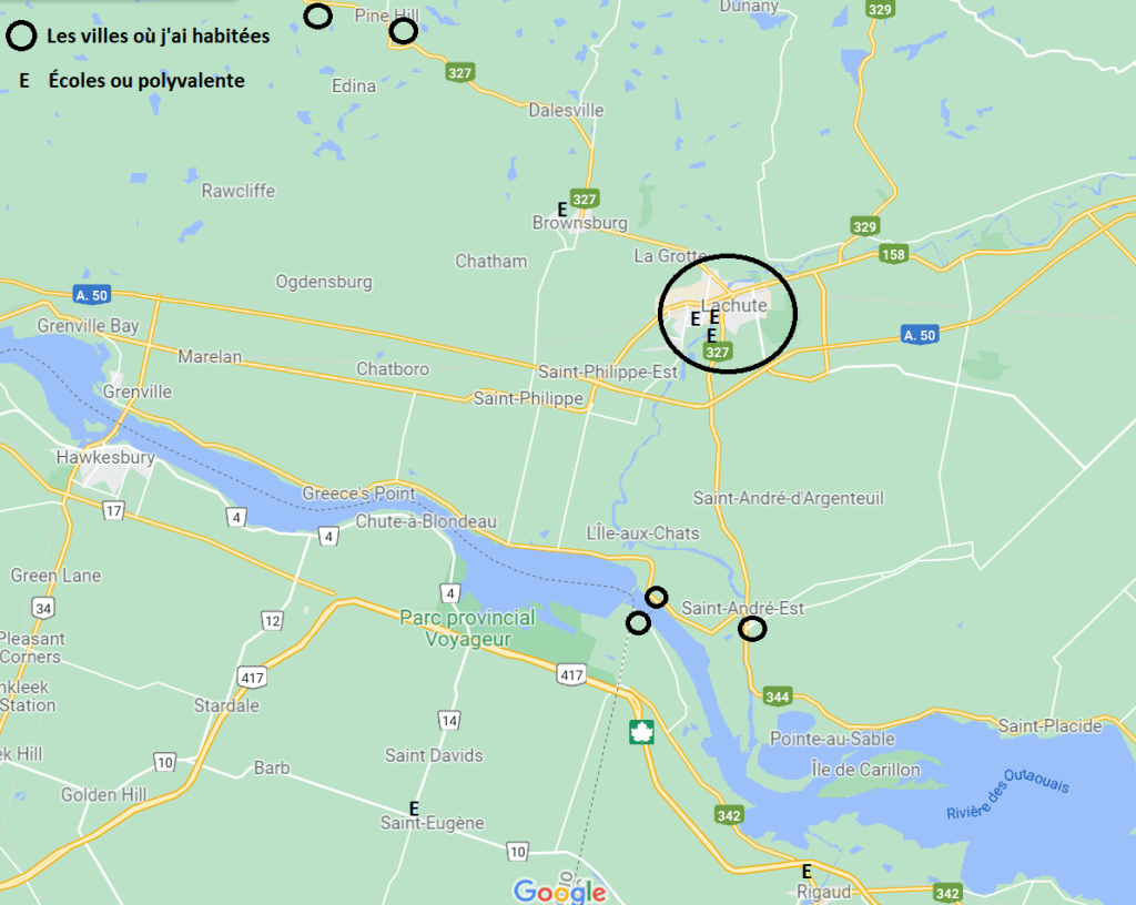 Pendant que je restais à St-André-Est, mon père déménagea dans d’autres villes en Amérique du Nord qui furent à l’occasion ma deuxième maison pour plusieurs semaines. En voici quelques-unes: